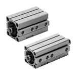 Φ12 to 50 mm [0.472 to 1.969 in] cylinder bore size. Two cylinders can be combined back-to-back for two operation strokes. Designed for total space saving.