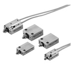 Φ4.5 to 10 mm [0.177 to 0.394 in] cylinder bore. Approximately 41% shorter length, 67% smaller volume. (Compared with Koganei multi mount cylinders.) Single acting type with integrated return spring.